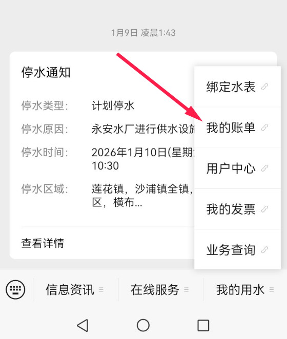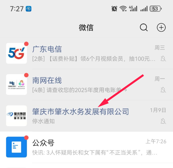 进入微信程序后,如图添加肇水集团的微信公众号。