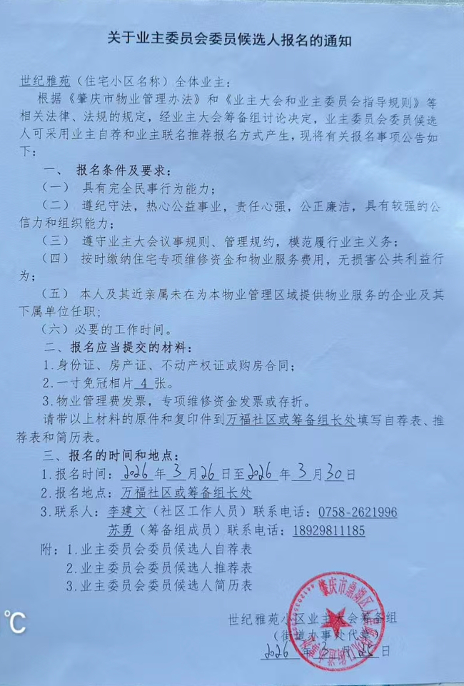关于业主委员会委员候选人报名的通知